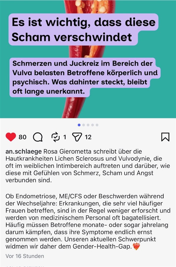 Um noch mehr junge Frauen zu erreichen ist der Verein neu auch bei Instagram zu finden: #verein_lichen_sclerosus / #jucken_und_brennen