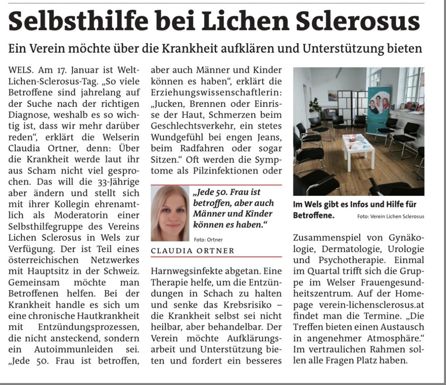 Im Vorfeld des WELT-LS-TAGES vom 17. Januar ist es der Österreicher Austauschgruppe Oberösterreich gelungen, die lokalen Medien aufmerksam zu machen. Grosses Danke an Claudia!