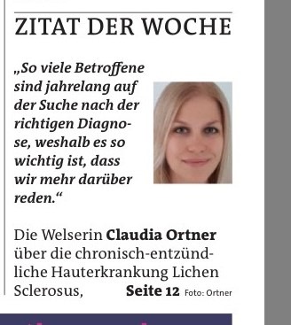 Die Schweizer Illustrierte berichtet ein zweites Mal über Lichen sclerosus: Über diese Krankheit schämen sich Frauen zu sprechen: